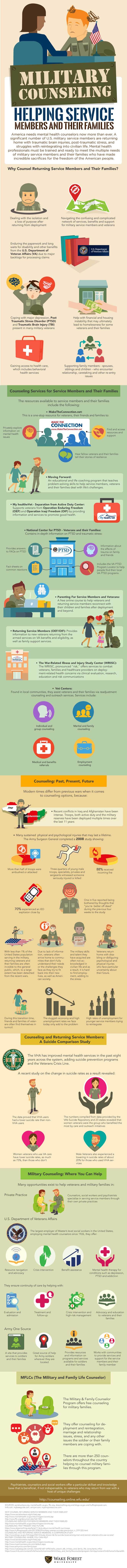 Mental health continues to be a preeminent issue in America. Getting your counseling degree can open up a world of rewarding job opportunities in this important field. In this infographic we specifically look at how military counseling is becoming a bigger and bigger need in America.